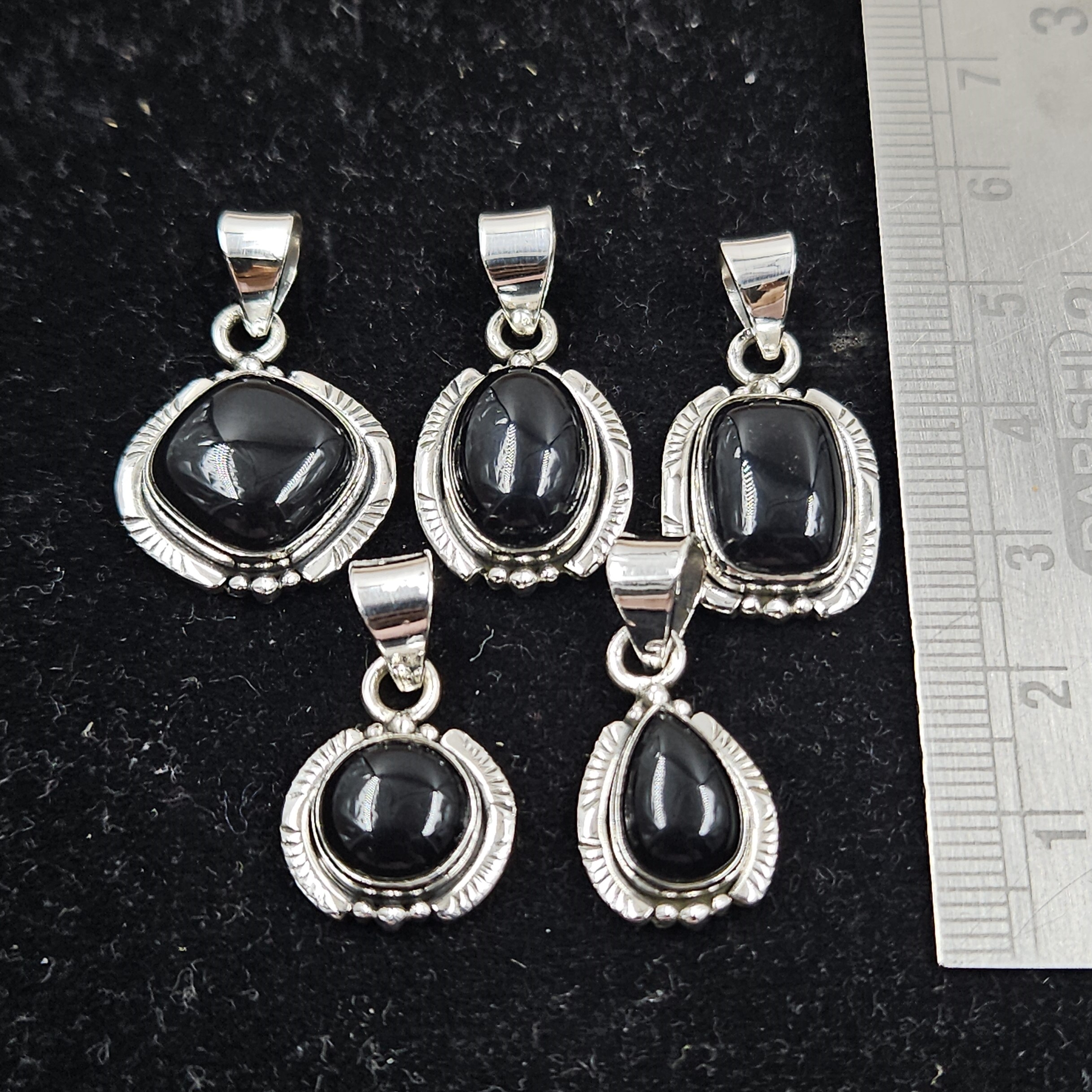5 PCS Bulk Lot Black Onyx 925 Sterling Silver Pendant (REXT152-7)