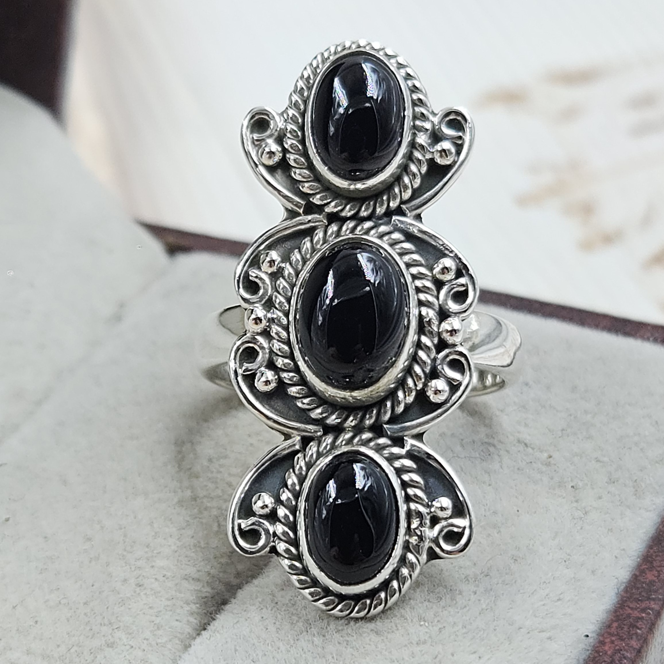 Black Onyx 925 Sterling Silver Ring (REXT17-50)