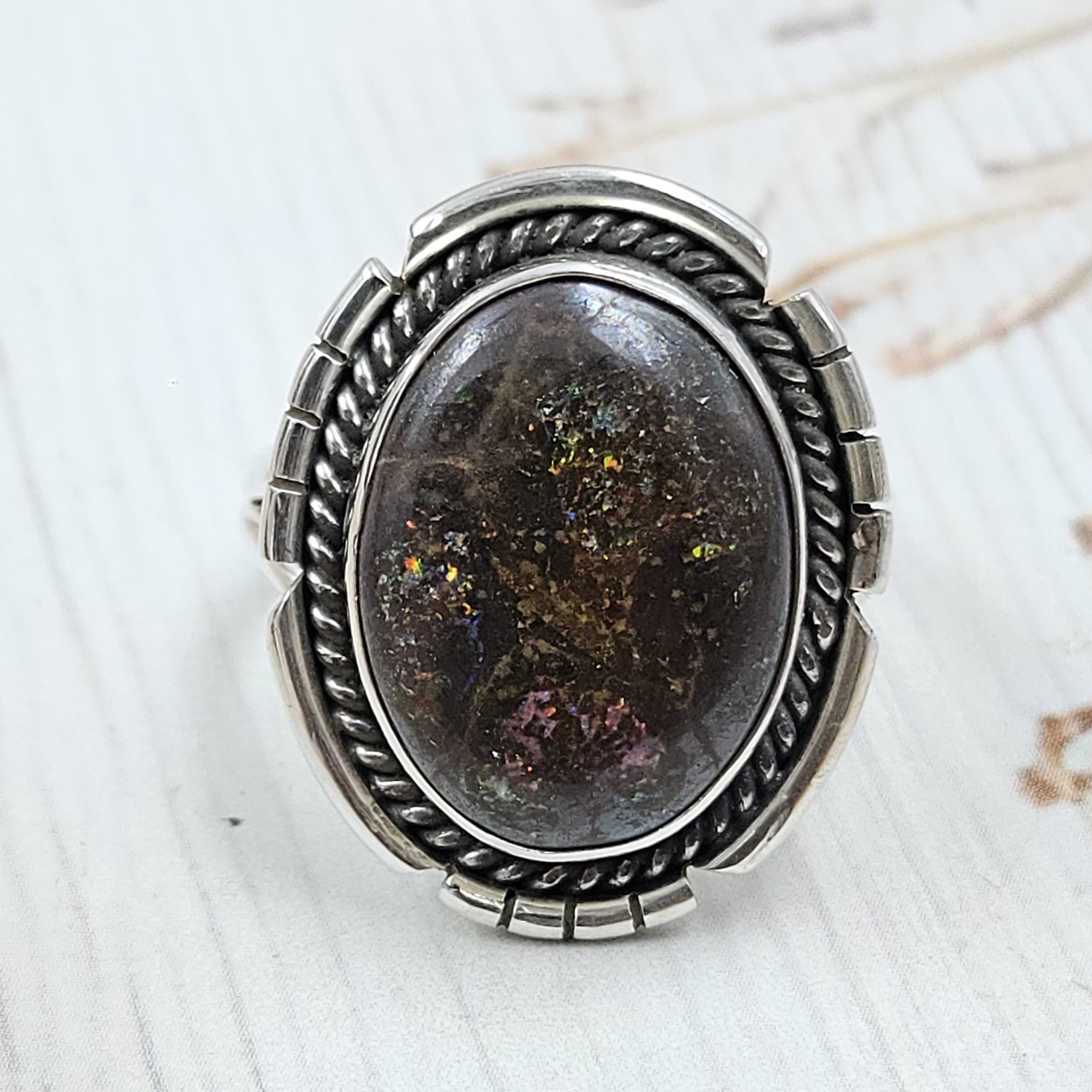 Boulder Opal Size US 10 925 Sterling Silver Ring (REXT59-24)