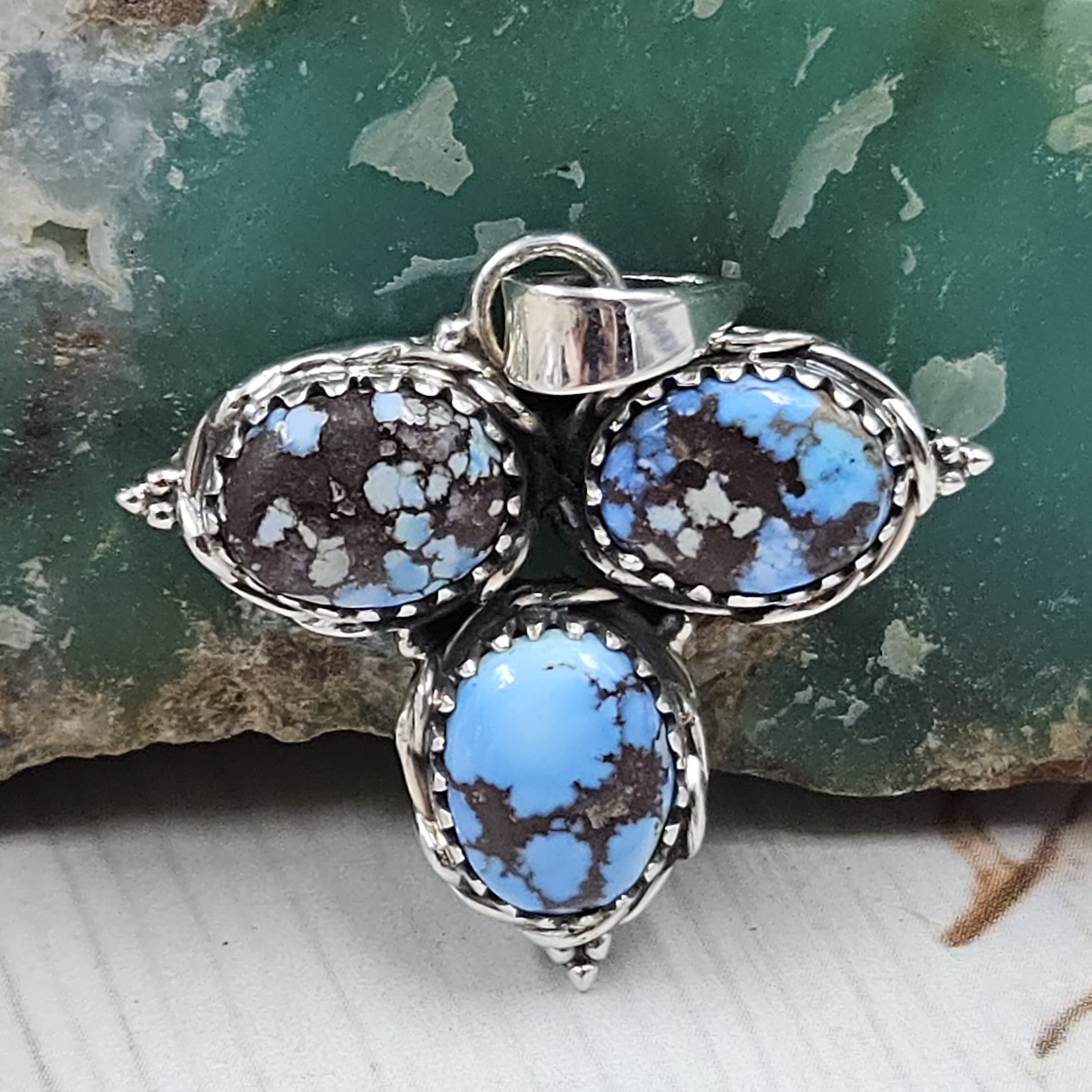 Golden Hills Turquoise 1″ 925 Sterling Silver Pendant (REXT23-92)