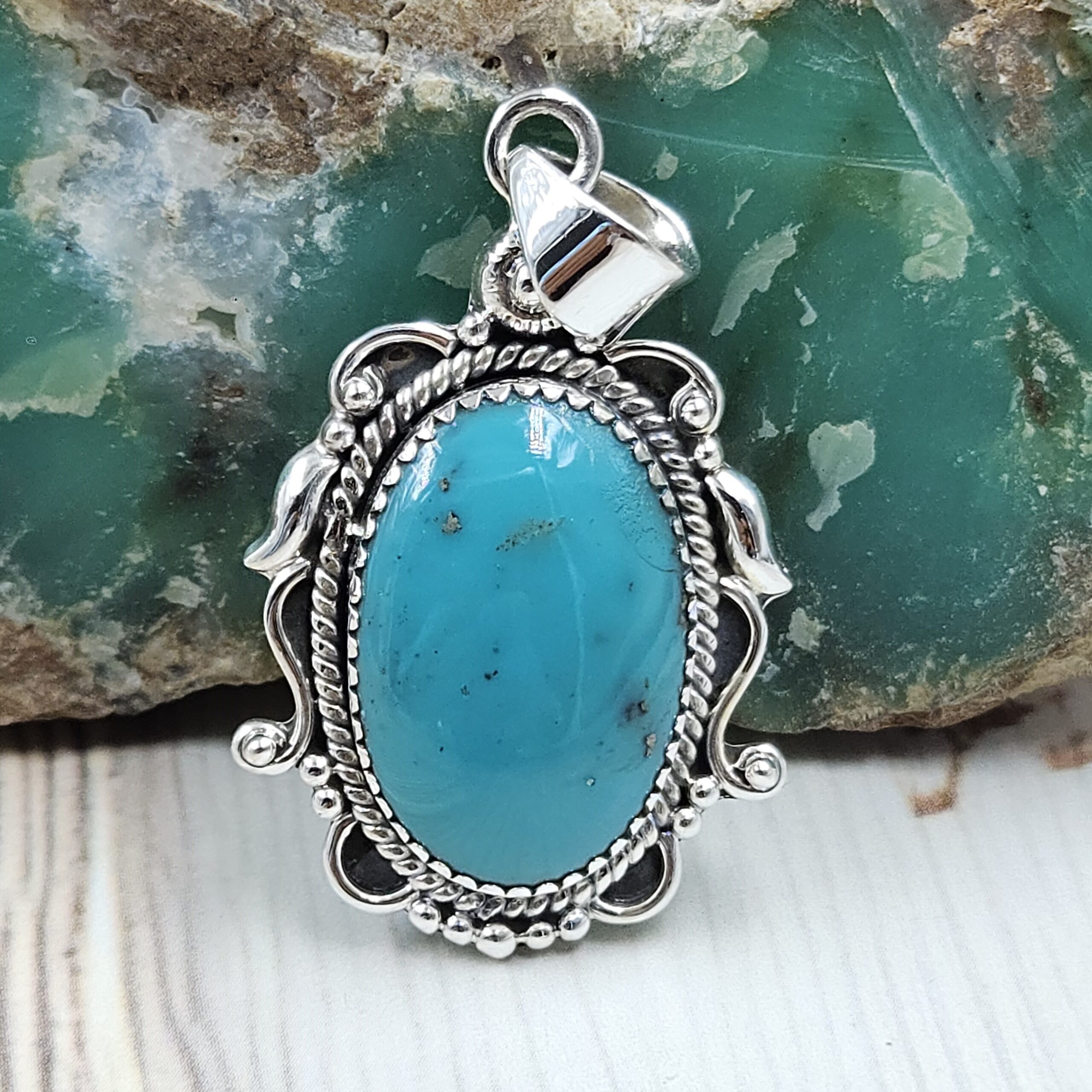 Kingman Turquoise Matt Finish 1.5″ 925 Sterling Silver Pendant (REXT26-42)