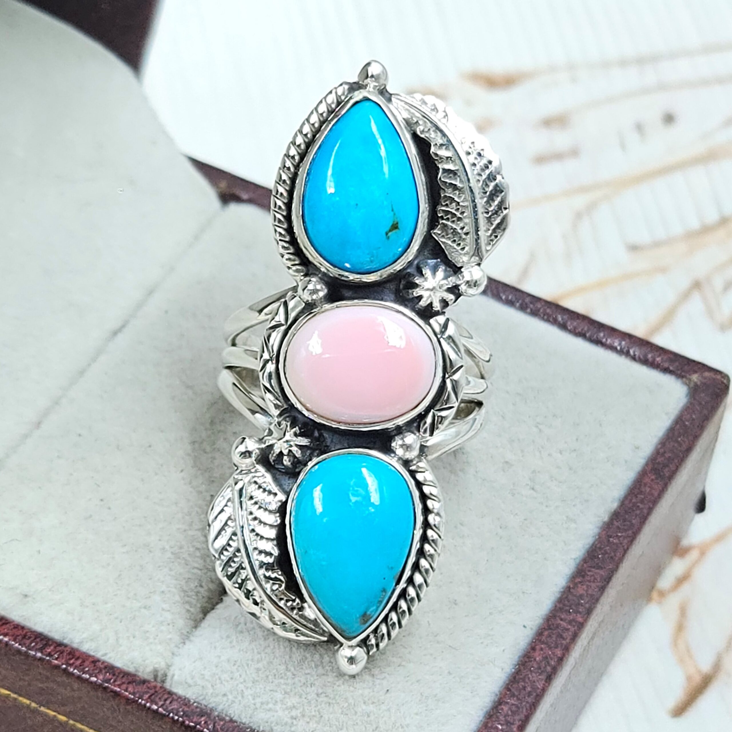 Kingman Turquoise & Pink Queen Conch 925 Sterling Silver Ring (RS3-212)