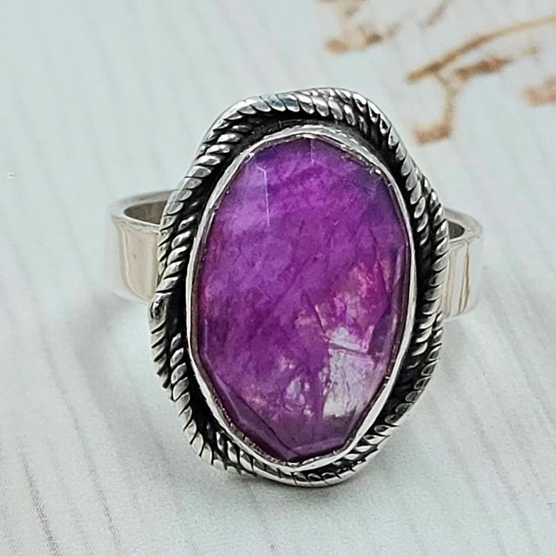 Pink Rainbow Moonstone Size US 6 925 Sterling Silver Ring (REXT58-32)