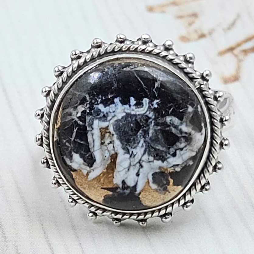 White Buffalo Copper Turquoise Size US 8 925 Sterling Silver Ring (REXT45-187)